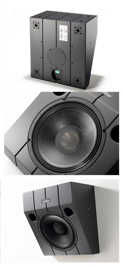 The design objective for this model was to offer a pre-angled version of THE10 PASSIVE ON WALL that can be installed in multiple locations where angling the speakers is mandatory. Such locations include but are not limited to front wide, Atmos and DTS top front and rear, front or rear high surrounds, side surrounds etc.