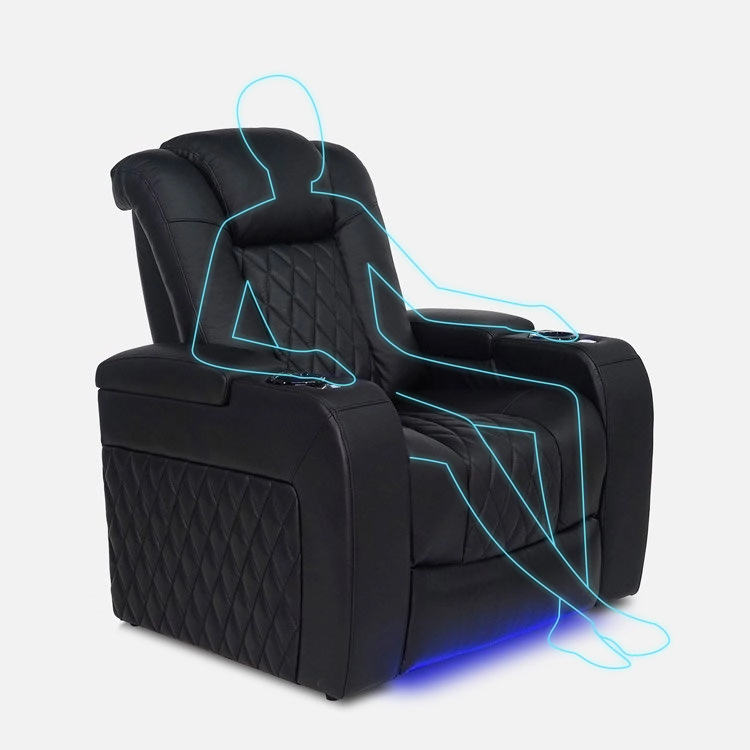 - Control system – includes LED ambient base, LED cup holder, and USB feature to charge your devices while you watch a movie.